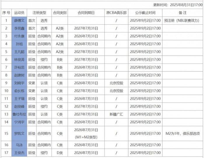 今日,CBA官网今天又更新了国内球员注册信息,其中,宁波男篮注册了17名球员。