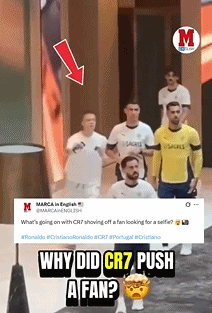 然而,《马卡报》公布了一段9月6日的视频。在视频中,一位球迷冲过来拿着手机试图与C罗合影,但却被C罗一把推开。唇语专家解读,C罗愤怒地表示,“我不会再说了,走开!我希望他们滚开。”